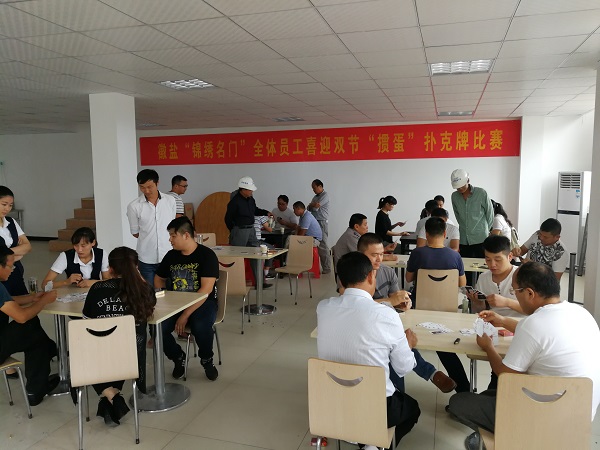 為迎接即將到來的中秋和國慶佳節(jié),同時加強公司各部門之間的聯(lián)系,方便日常工作的順利開展,活躍公司內(nèi)部員工工作氣氛,激發(fā)公司員工的工作熱情。9月21日,“徽鹽?錦繡名門”項目公司食堂熱鬧非凡,公司各部門員工共同參加喜迎雙節(jié)“摜蛋”撲克牌比賽。
